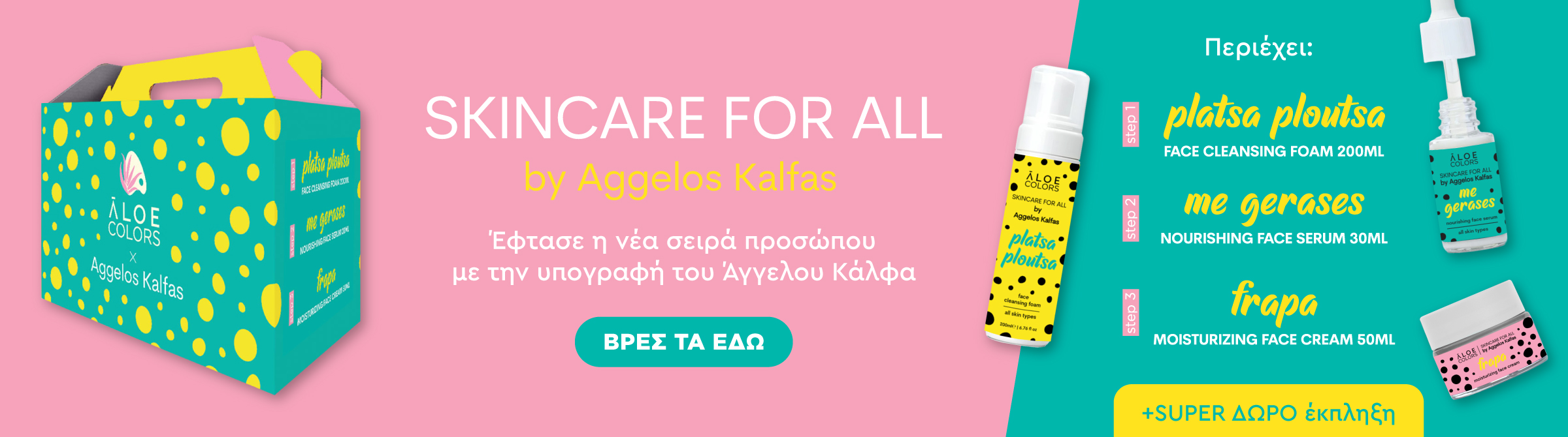 Όλο το καλοκαίρι χωράει σε ένα νεσεσέρ με το Summer in a Bag της Aloe Colors! Περιλαμβάνει αντηλιακό προσώπου με χρώμα και SPF 30 για ομοιόμορφη κάλυψη και προστασία από την ηλιακή ακτινοβολία, καθώς και μια After sun καταπραϋντική μάσκα προσώπου για άμεση ανακούφιση και αναζωογόνηση. Τα απαραίτητα προϊόντα για λαμπερό και ενυδατωμένο δέρμα όλο το καλοκαίρι!